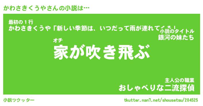 | 胡散臭い通販商品みたいなあだ名 | 『必ず成功するブレスレット…その名も「かわさきくうや」』 |