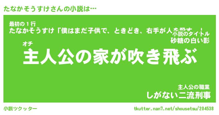 | 男性向けラノベタイトル風あだ名 | 『たなかそうすけの憂鬱』 |
