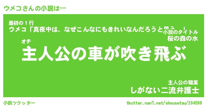 | 男性向けラノベタイトル風あだ名 | 『ウメコの憂鬱』 |