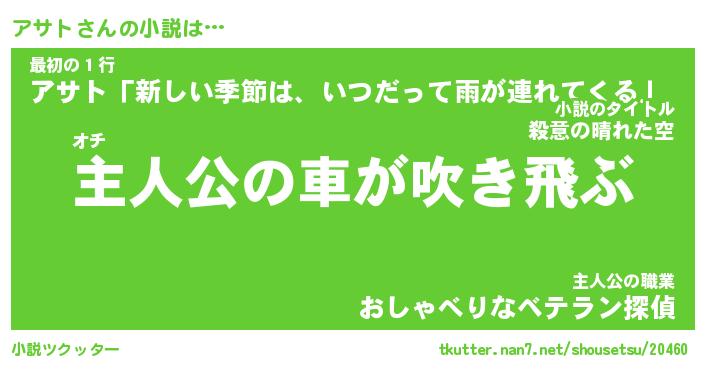 | 男性向けラノベタイトル風あだ名 | 『アサトの憂鬱』 |