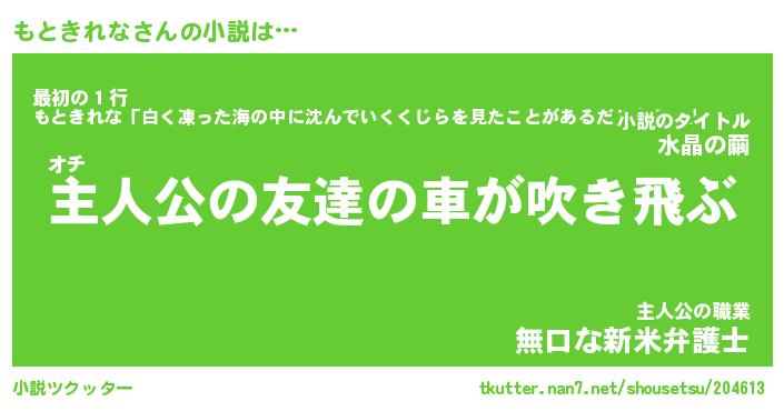 | ツイッター | もときれなさんのツイッターID『dendenmushi_kun』 |