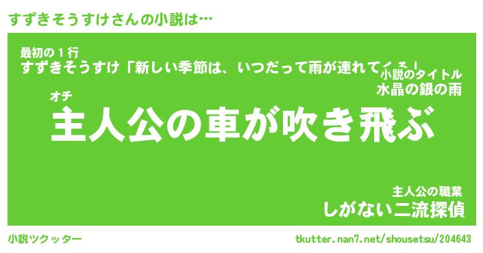 | 魚たちの銀の雨WW …「ケモノ」 | 10月27日 05:47 |