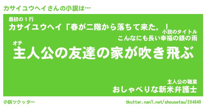 | 男性向けラノベタイトル風あだ名 | 『カサイユウヘイアートオンライン』 |