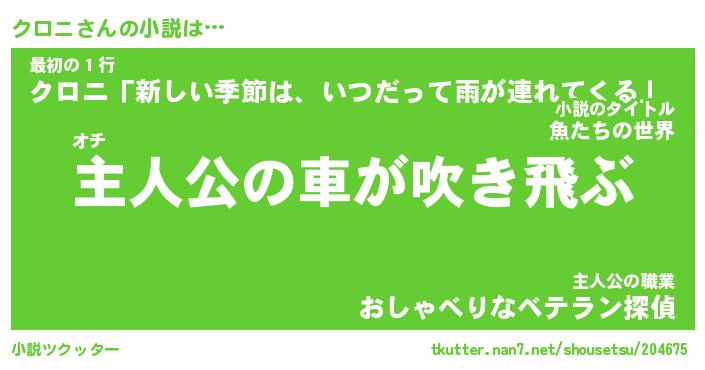 | 魚たちの銀の雨WW …「ケモノ」 | 10月27日 05:47 |
