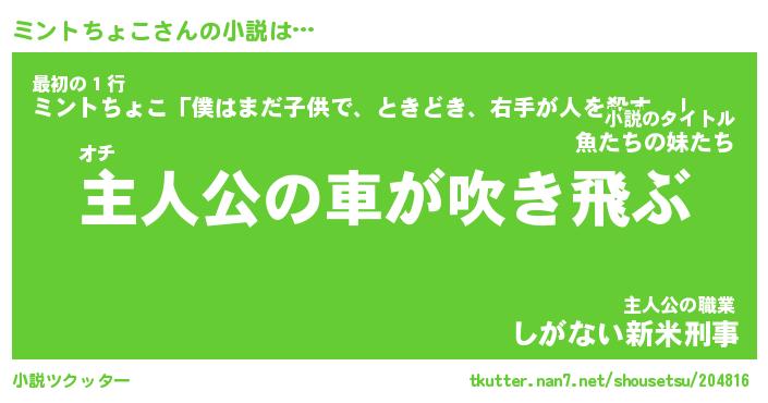 | 男性向けラノベタイトル風あだ名 | 『ミントちょこの憂鬱』 |