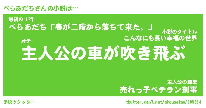 | 男性向けラノベタイトル風あだ名 | 『べらあだちの憂鬱』 |