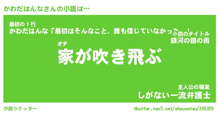| 男性向けラノベタイトル風あだ名 | 『かわだはんなの憂鬱』 |