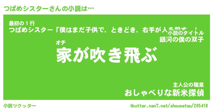 | 男性向けラノベタイトル風あだ名 | 『つばめシスターの憂鬱』 |