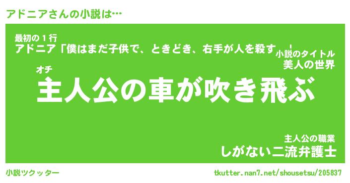 | 男性向けラノベタイトル風あだ名 | 『アドニアの憂鬱』 |