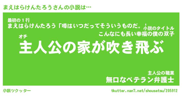 | 胡散臭い通販商品みたいなあだ名 | 『必ず成功するブレスレット…その名も「まえはらけんたろう」』 |