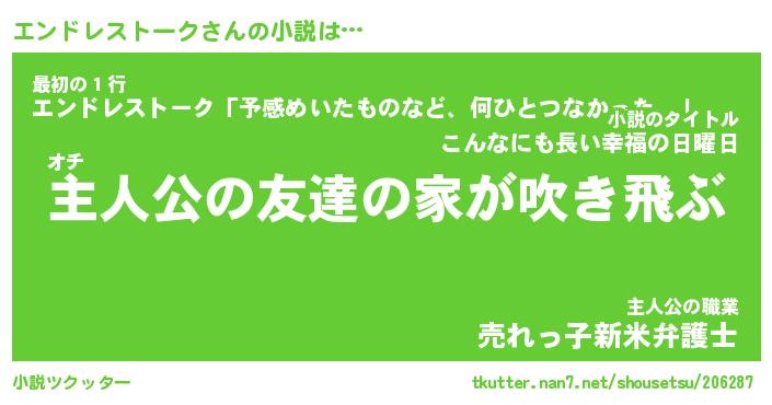 | 男性向けラノベタイトル風あだ名 | 『エンドレストークアートオンライン』 |