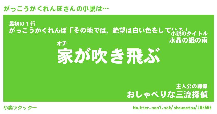 | 魚たちの銀の雨WW …「ケモノ」 | 10月27日 05:47 |