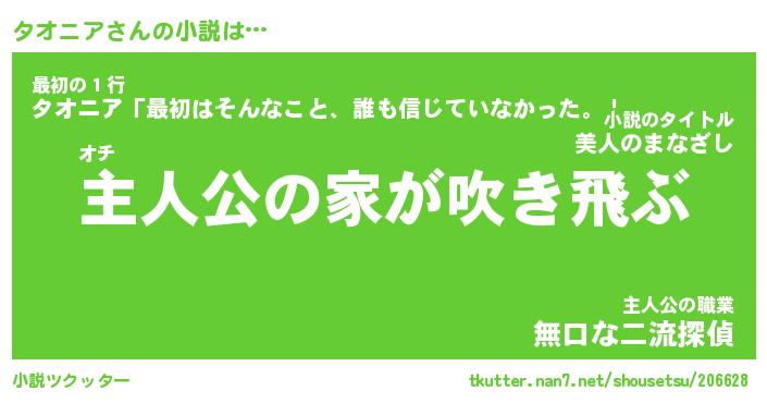 | 男性向けラノベタイトル風あだ名 | 『タオニアの憂鬱』 |