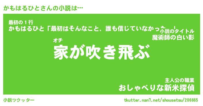 | 胡散臭い通販商品みたいなあだ名 | 『必ず成功するブレスレット…その名も「かもはるひと」』 |