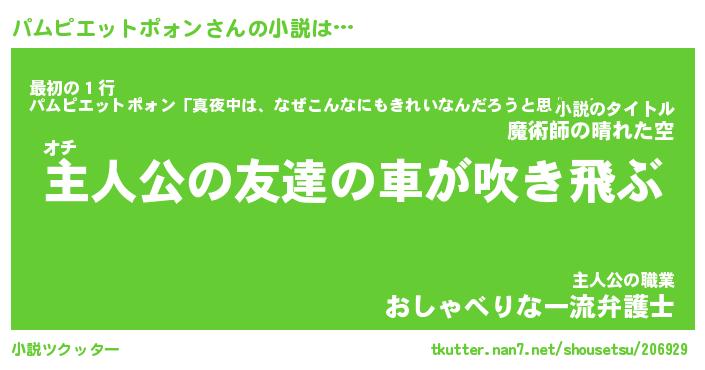 | 男性向けラノベタイトル風あだ名 | 『パムピエットポォンアートオンライン』 |