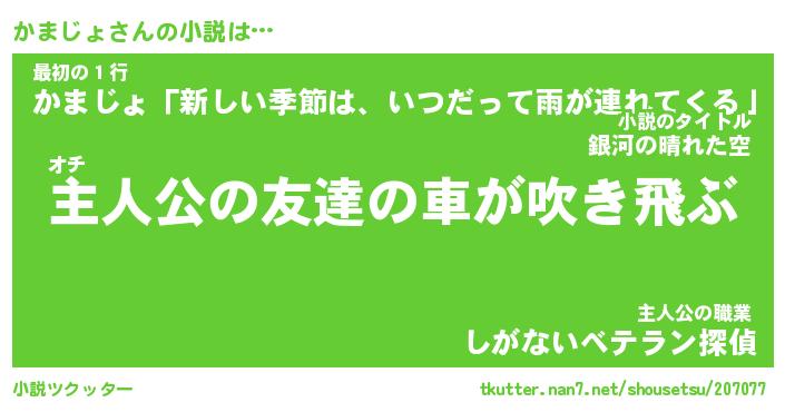 | 魚たちの銀の雨WW …「ケモノ」 | 10月27日 05:47 |