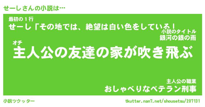 | 魚たちの銀の雨WW …「ケモノ」 | 10月27日 05:47 |
