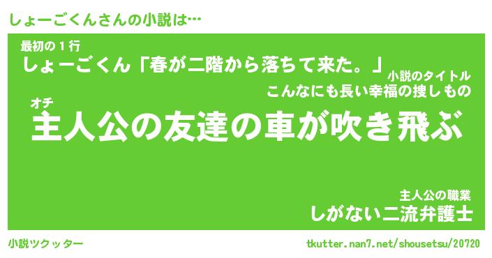 | 男性向けラノベタイトル風あだ名 | 『ショーゴクンアートオンライン』 |