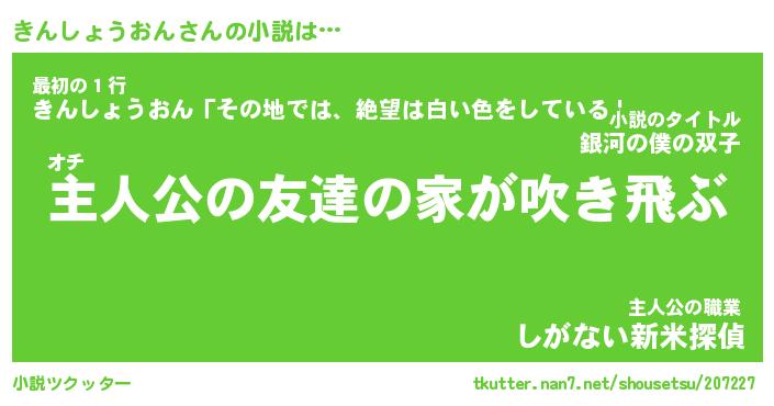 | 男性向けラノベタイトル風あだ名 | 『きんしょうおんの憂鬱』 |