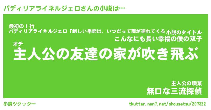 | 魚たちの銀の雨WW …「ケモノ」 | 10月27日 05:47 |