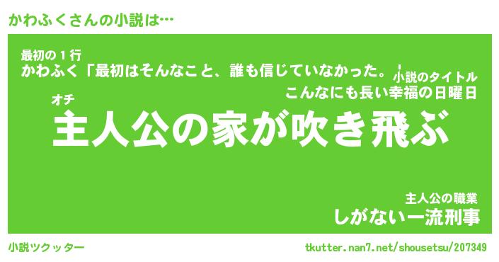 | 男性向けラノベタイトル風あだ名 | 『かわふくの憂鬱』 |