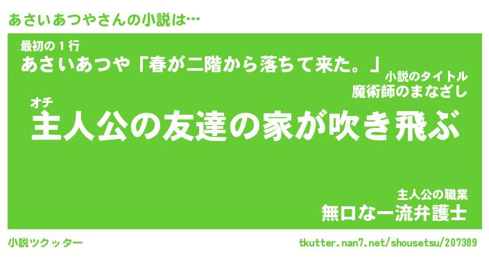 男性向けラノベタイトル風あだ名 | 『あさいあつやの憂鬱』 |