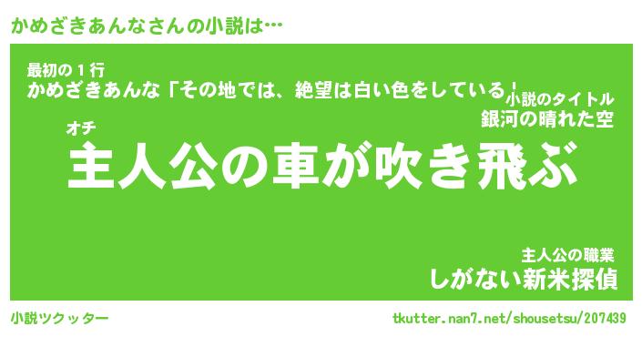 | 男性向けラノベタイトル風あだ名 | 『かめざきあんなの憂鬱』 |