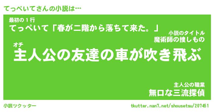 | 胡散臭い通販商品みたいなあだ名 | 『億万長者になれる霊験あらたかなお札…その名も「てっぺいて」』 |