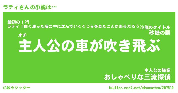 | 男性向けラノベタイトル風あだ名 | 『ラティの憂鬱』 |