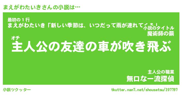 | ツイッター | まえがわたいきさんのツイッターID『namakemono_star』 |