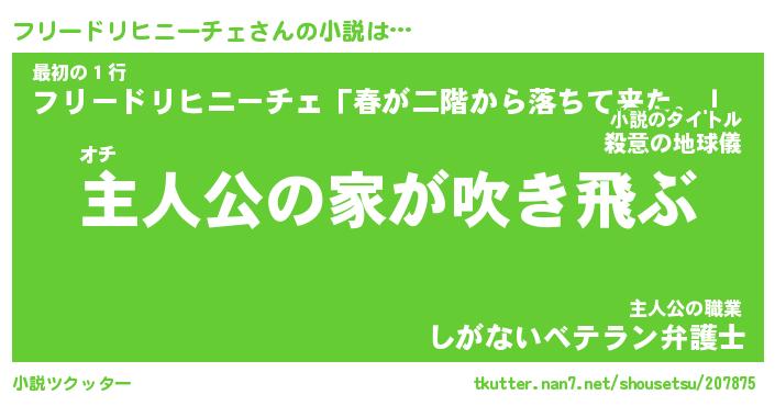 | 胡散臭い通販商品みたいなあだ名 | 『必ず成功するブレスレット…その名も「フリードリヒニーチェ」』 |