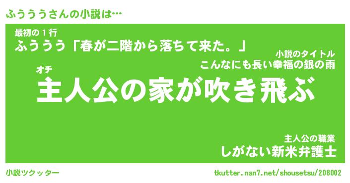 | 男性向けラノベタイトル風あだ名 | 『ふうううの憂鬱』 |