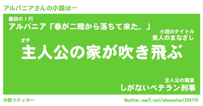 | 男性向けラノベタイトル風あだ名 | 『アルバニアの憂鬱』 |