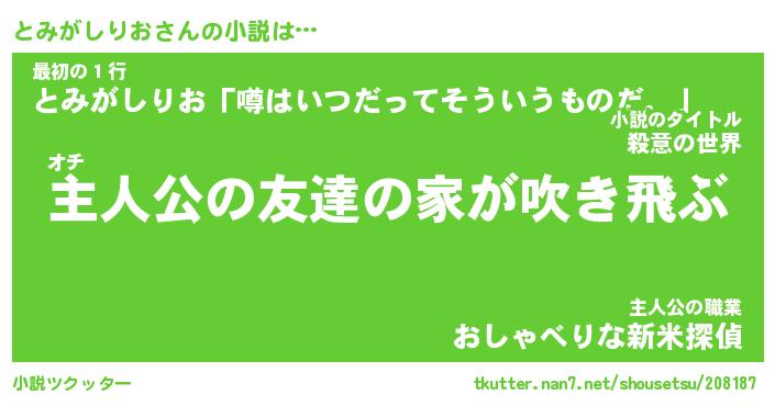 | 男性向けラノベタイトル風あだ名 | 『とみがしりおの憂鬱』 |