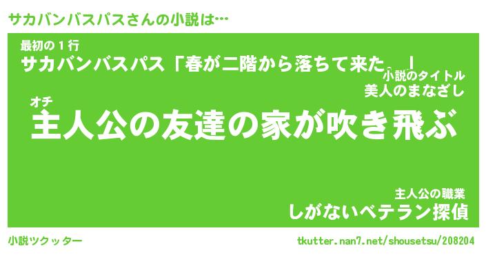 | 欧米人風あだ名 | 『マイケルサカバンバスパス』 |