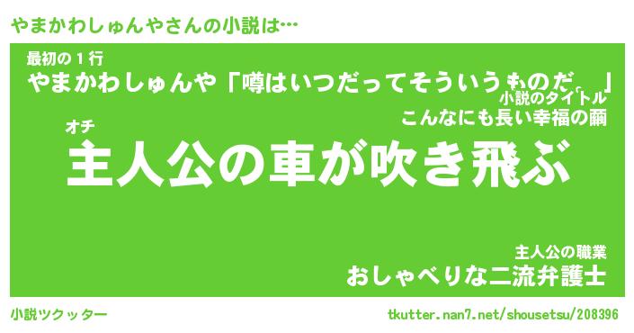 | 男性向けラノベタイトル風あだ名 | 『やまかわしゅんやの憂鬱』 |