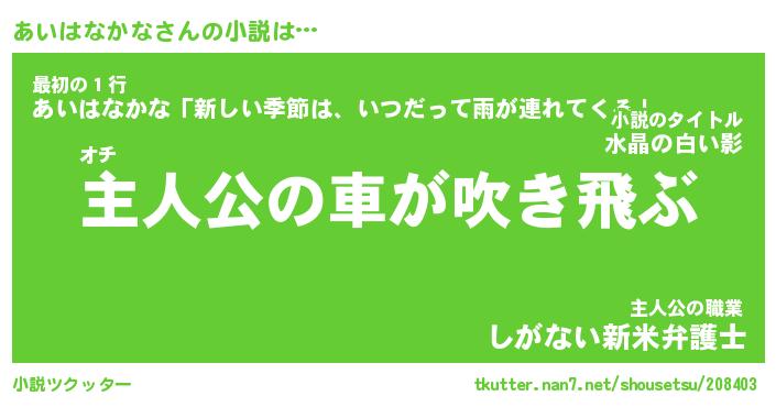 | 男性向けラノベタイトル風あだ名 | 『あいはなかなの憂鬱』 |