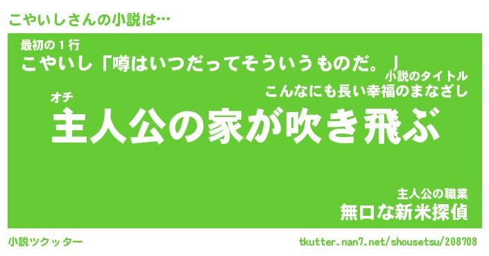 | 男性向けラノベタイトル風あだ名 | 『こやいしの憂鬱』 |