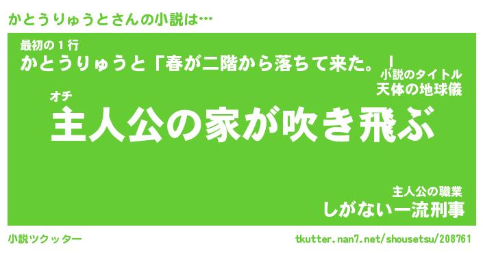 | 胡散臭い通販商品みたいなあだ名 | 『必ず成功するブレスレット…その名も「かとうりゅうと」』 |