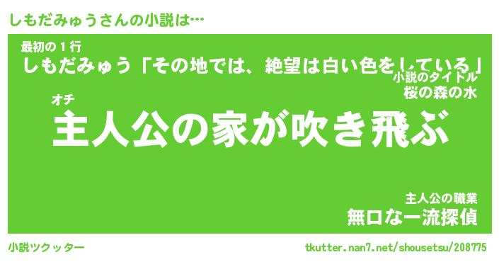 | 男性向けラノベタイトル風あだ名 | 『しもだみゅうの憂鬱』 |