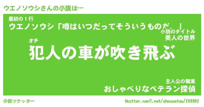 | 胡散臭い通販商品みたいなあだ名 | 『億万長者になれるブレスレット…その名も「ウエノソウシ」』 |