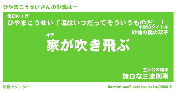 | 男性向けラノベタイトル風あだ名 | 『ひやまこうせいの憂鬱』 |