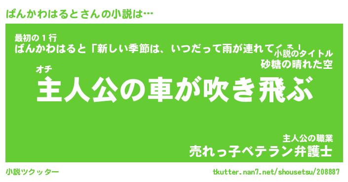 | 男性向けラノベタイトル風あだ名 | 『ばんかわはるとの憂鬱』 |
