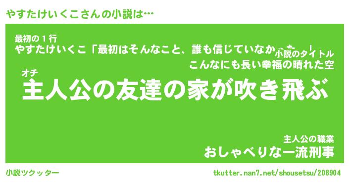 | 男性向けラノベタイトル風あだ名 | 『やすたけいくこの憂鬱』 |