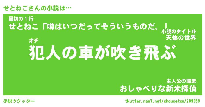 | 胡散臭い通販商品みたいなあだ名 | 『億万長者になれるブレスレット…その名も「せとねこ」』 |