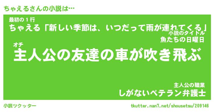 | ツイッター | ちゃえるさんのツイッターID『dendenmushi_kun』 |