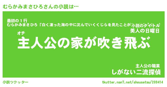 | 男性向けラノベタイトル風あだ名 | 『むらかみまさひろの憂鬱』 |