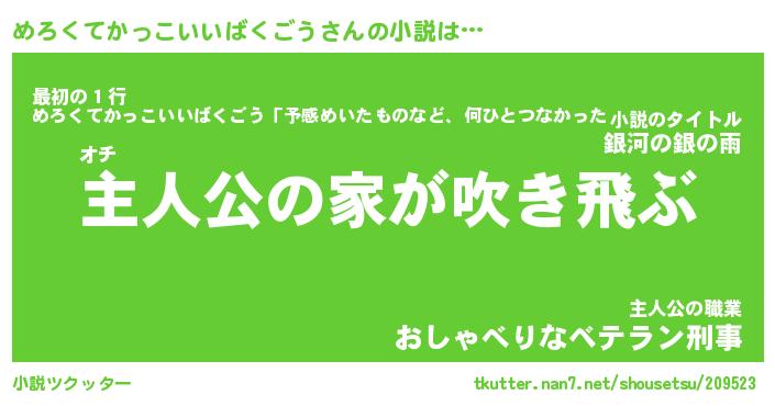 | 魚たちの銀の雨WW …「ケモノ」 | 10月27日 05:47 |
