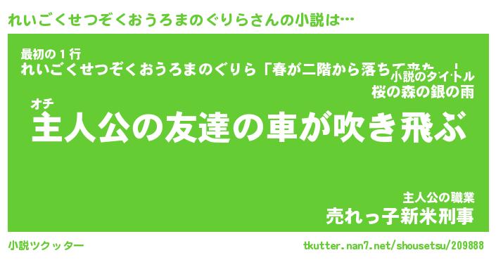 | ツイッター | れいごくせつぞくおうろまのぐりらさんのツイッターID『katatsumuri_man』 |
