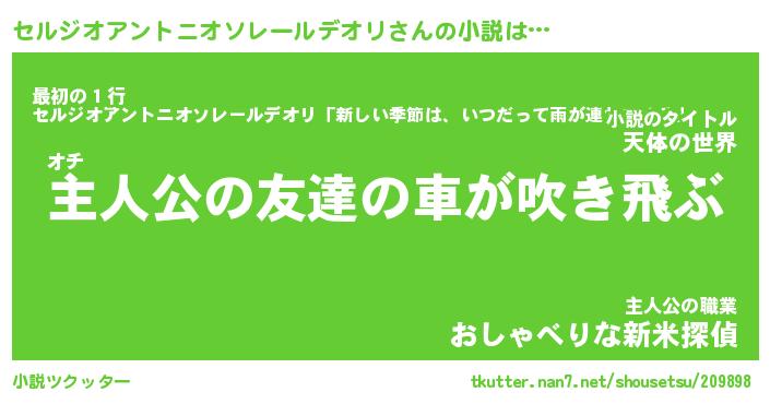| 男性向けラノベタイトル風あだ名 | 『セルジオアントニオソレールデオリアートオンライン』 |